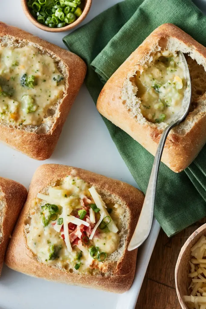 Soupe au brocoli et cheddar dans un bol de pain